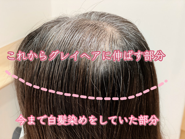 先月まで白髪染めをしていたのをやめて髪が伸びるのを待てればいいですが、やはり根元の白髪が気になりやすいと思います。