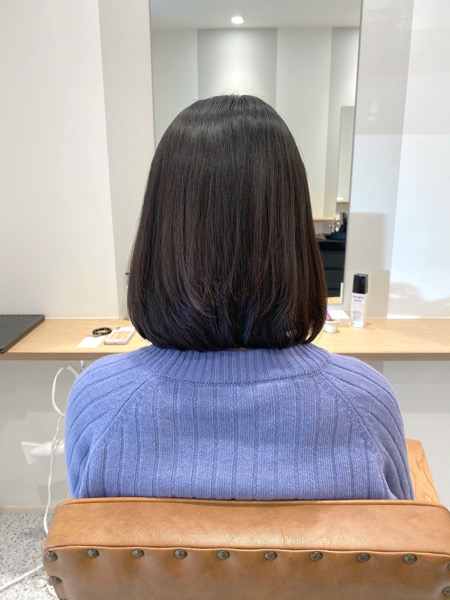 縮毛矯正の薬剤を調整することで、柔らかく自然なストレートになりました。
