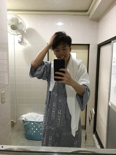 ホテル泊まって朝風呂入って自撮りして出勤です