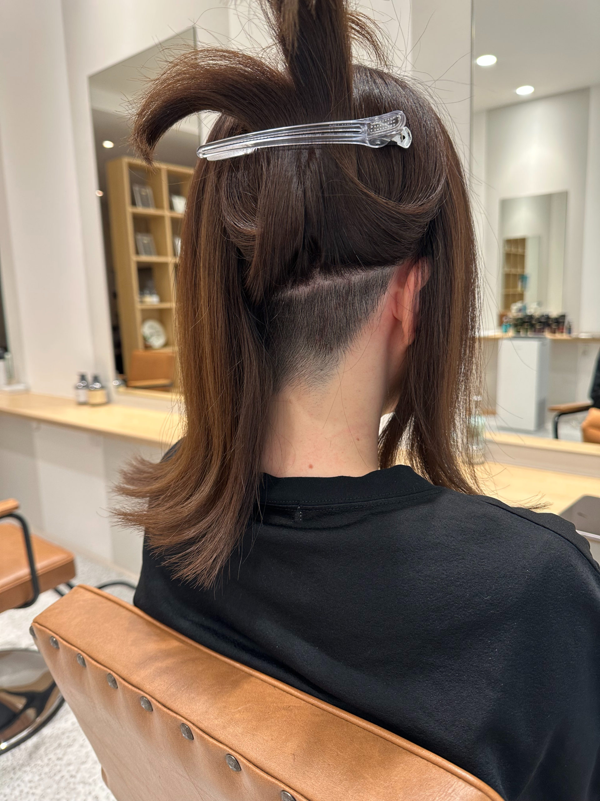 ショートヘアのように毛先が軽く 段差が入っていると、被せる髪の長さが足りませんがボブやミディアムなら刈り上げを隠すことができます。