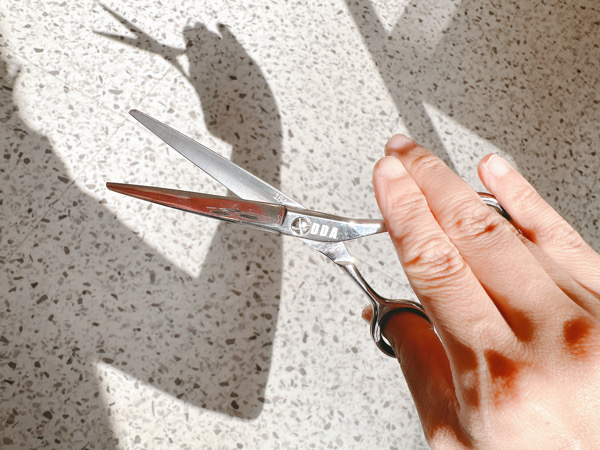 くせ毛を活かしたカットでは、毛先が自然と内側に収まるような長さの見極めがとても大切。カットの段階で、髪の生え方やくせの出方を見ながら、広がりすぎない絶妙なシルエットに整えていきます。