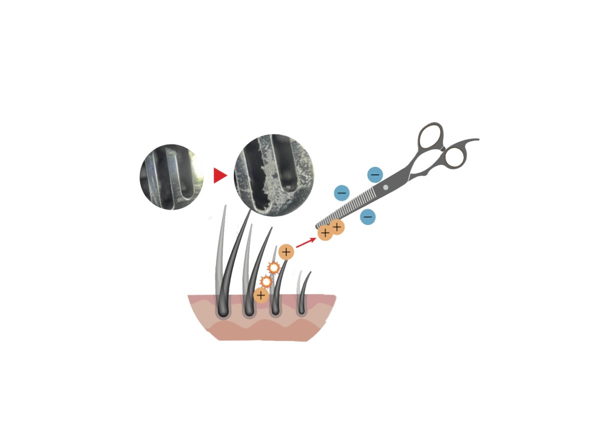 またハサミ型コームで頭皮を馴染ませると、髪や毛穴に溜まった皮脂汚れ、塩素、残留アルカリ、界面活性剤が吸着され、本来の素髪になります。