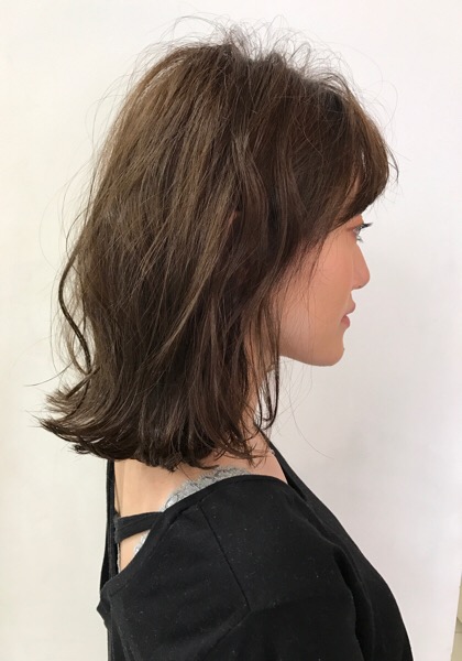 [fukidashi]今回は鎖骨下までワンレンでカットしてイルミナカラーでマット系アッシュ6レベルにしていきます![/fukidashi]After